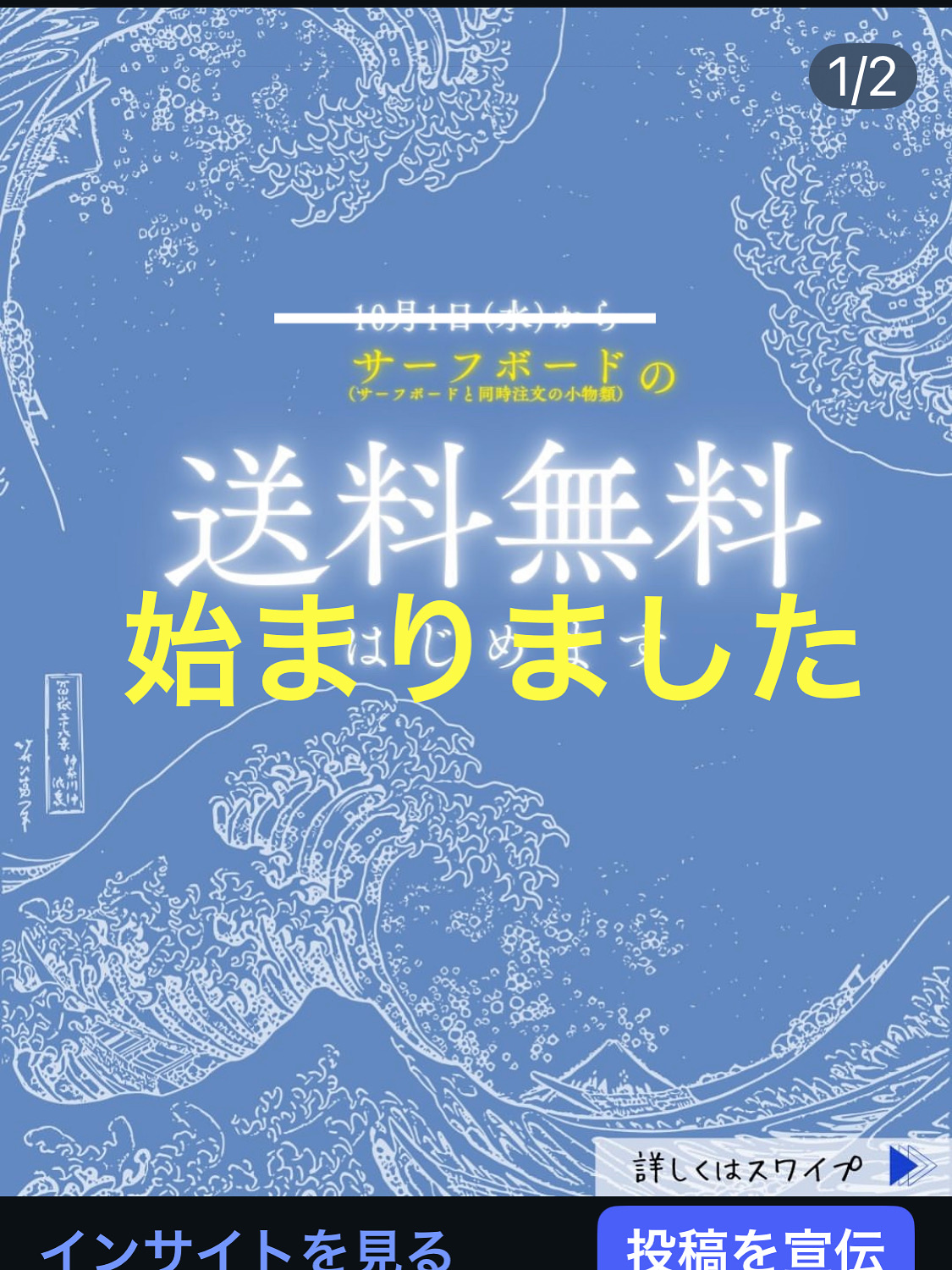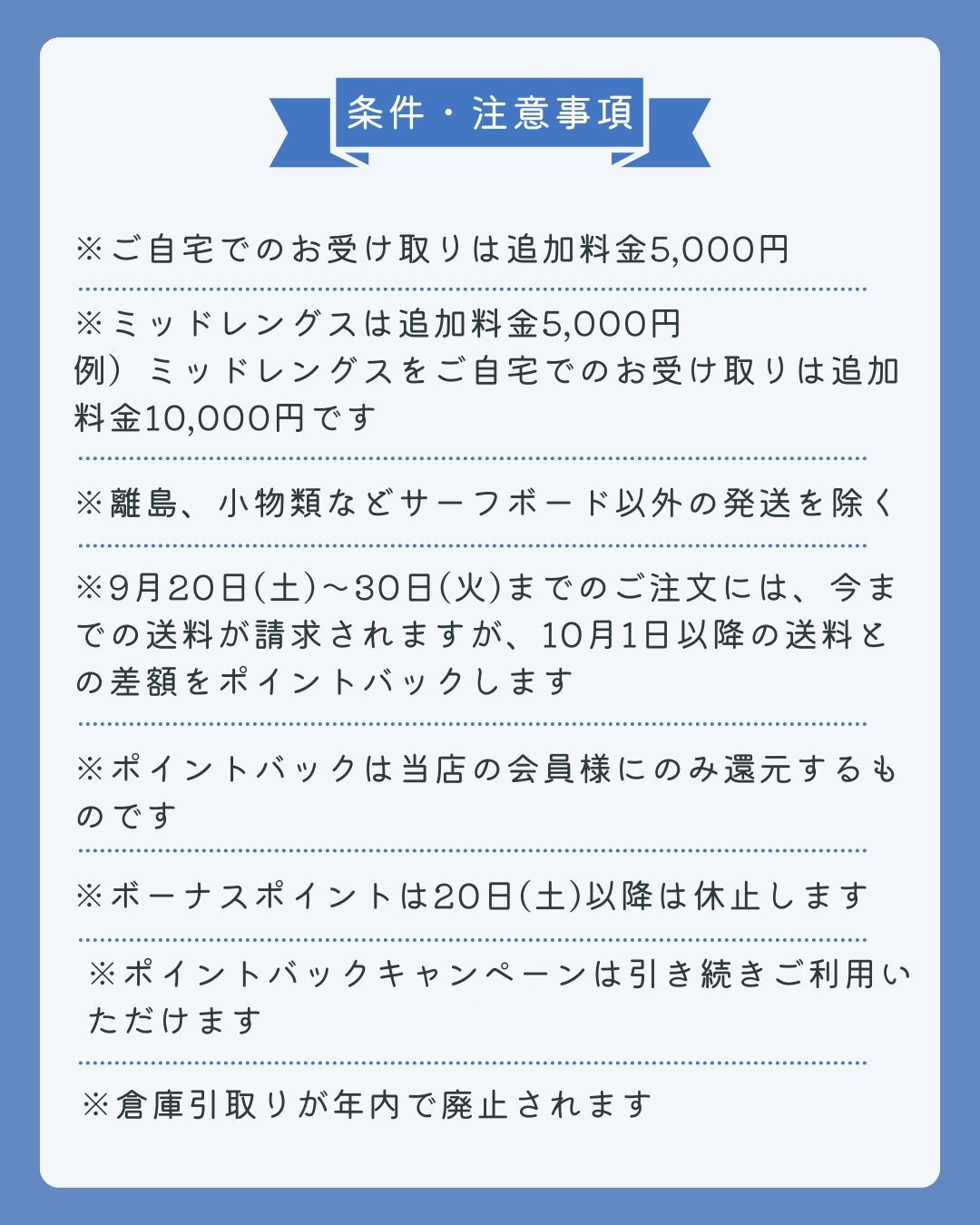 10月1日(水)からサーフボード(サーフボードと同時注文された小物類)の配達先がご勤務先、または運送会社の営業所(支店)でのお受け取りが送料無料になりました。