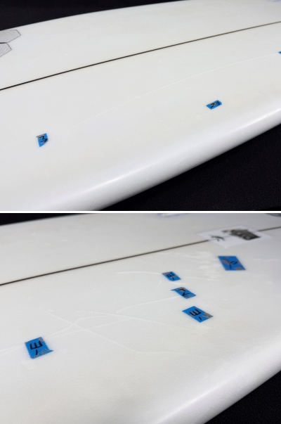 | フィン | フィンは付属しておりません。 *パフォーマンス、ツインの中間。ルース(テールスライド)なサーフィンを楽しむためのフィン設定にはツイン+スタビがお勧めです。 |