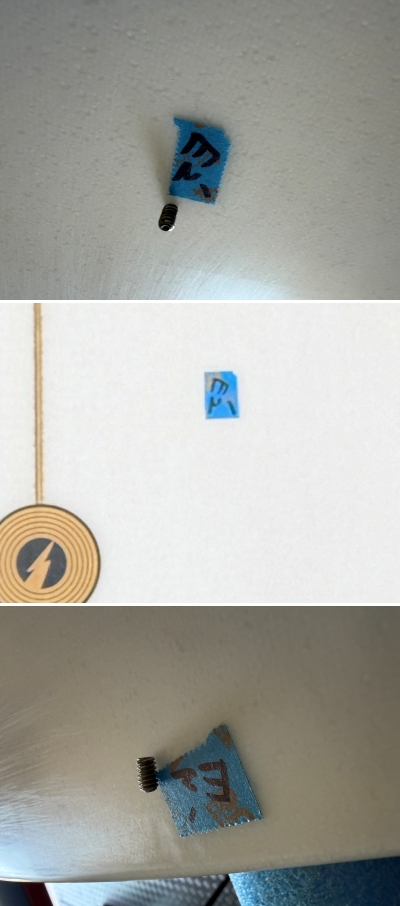 ボトム面、左中央レール上にプロによるものと、素人によるリペアの跡が一箇所ずつございます。