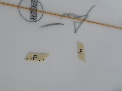 初おろしの日は頭サイズありましたがテイクオフは素晴らしく速く、乗ってからのスピードも申し分ありません!フィンはコントローラークワッドを選択。相性は抜群ですね。見た目からは想像出来ないターンの軽さとスケーティングでのスピードに病みつきになること間違いなしです!レトロツインはどうもな~って思ってる方にかなりおすすめです!ミルンほんとにいいシェイパーですね!