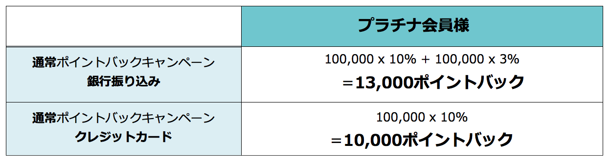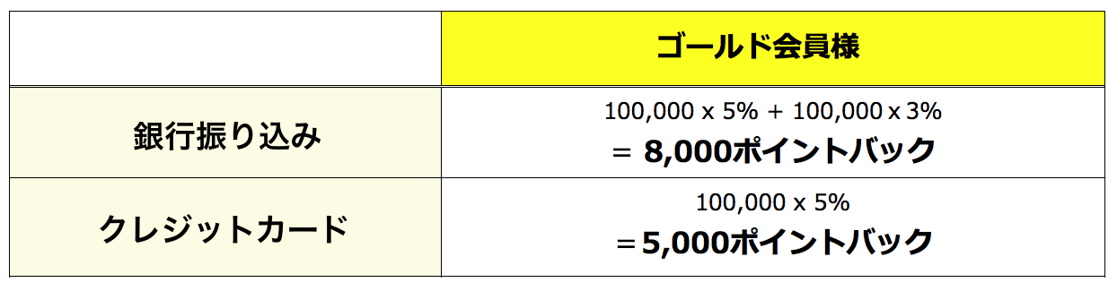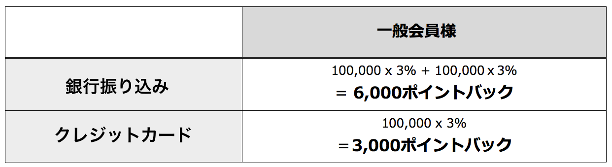 - ポイントバックとして付与する為の計算式は会員ステイタスによっ