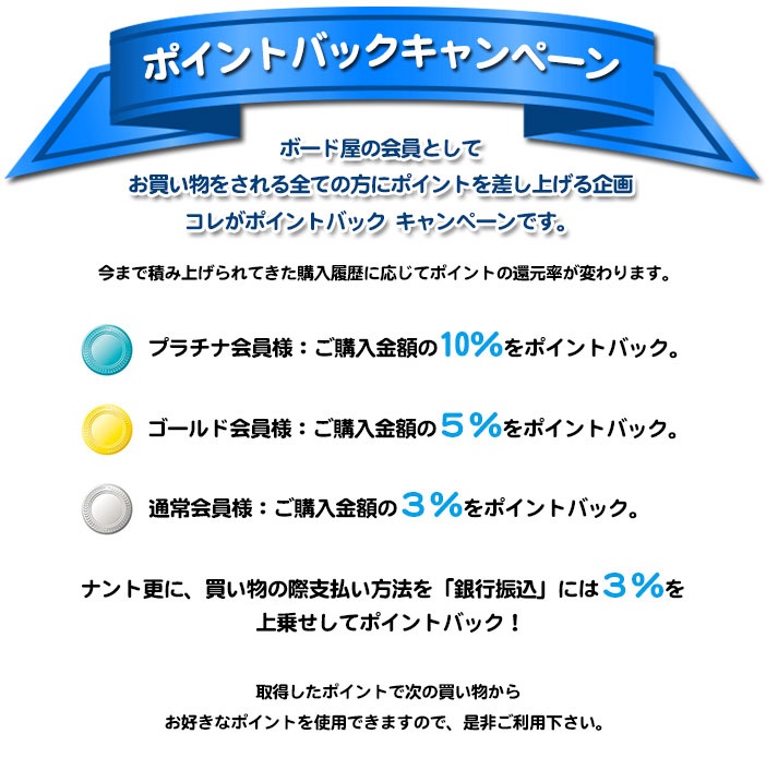 ※会員様のランクはボードの購入回数によって決められています。条件は会員制度を御覧くださいませ。