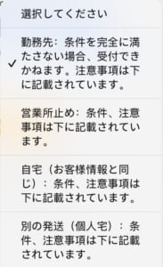 営業所止め | 勤務先 | 個人宅 | |